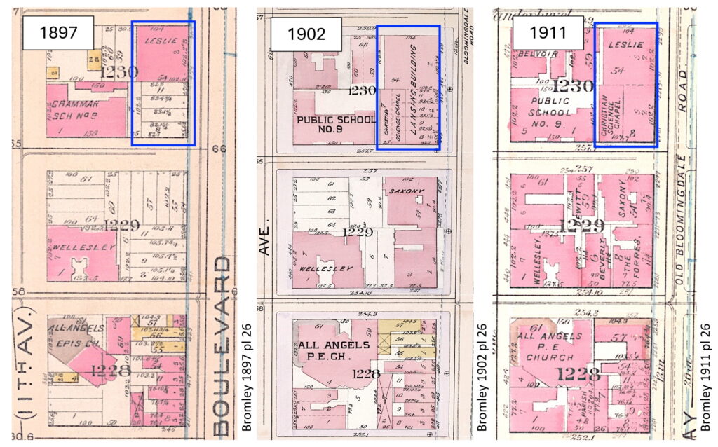 The Leslie or Lansing Building was built in 1897-98. By 1911 every lot has been developed between 80th and 83rd, and the last wood structures are gone.