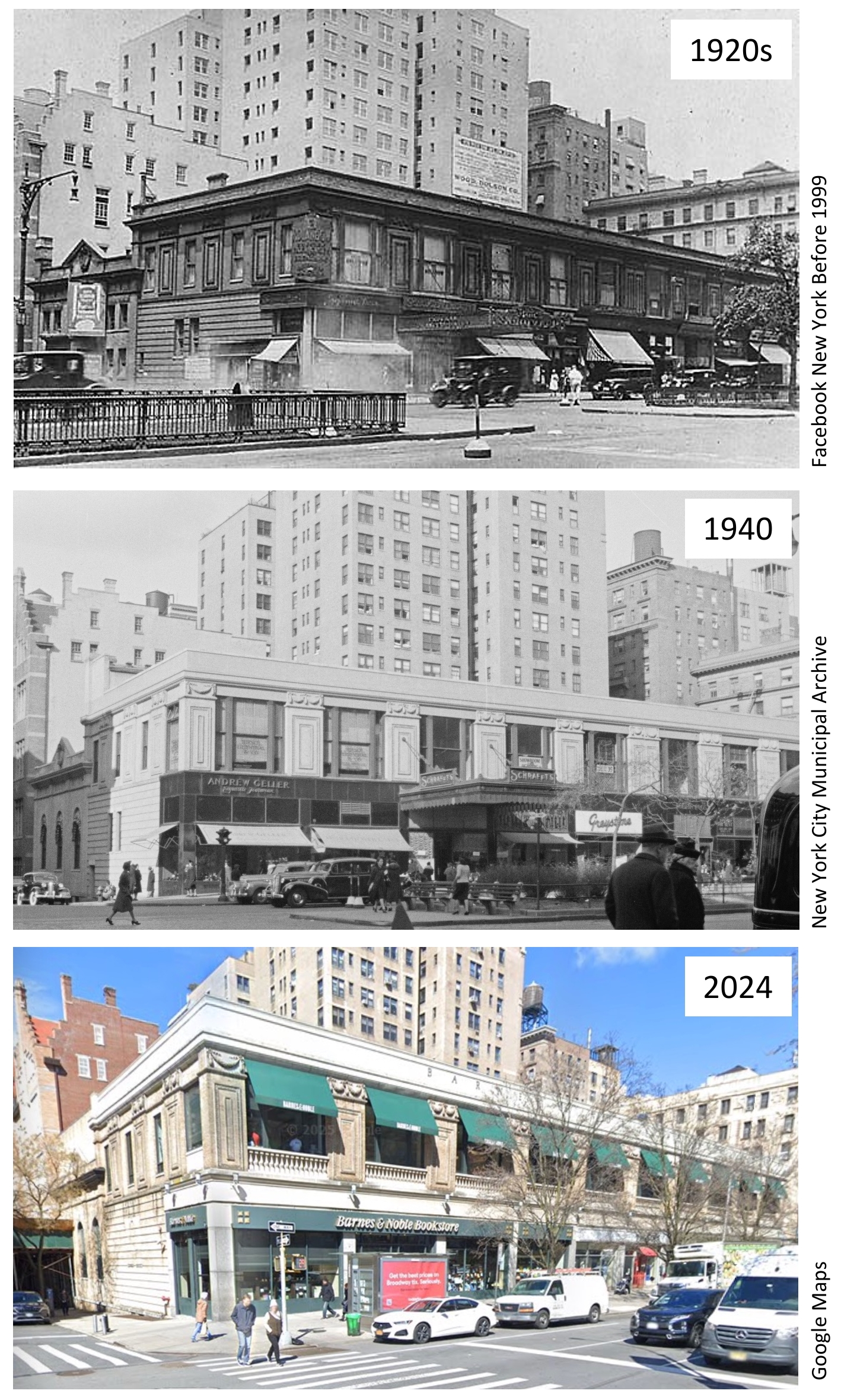 2281-2299 Broadway as it appeared over the course of a century.
