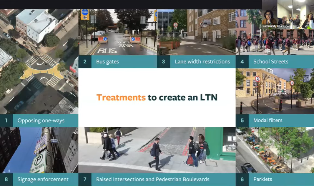 That statistic was shared with CB7’s Transportation Committee earlier this month by representatives from Open Plans, a non-profit whose goal is to reduce car traffic and improve pedestrian safety. Open Plans’ presentation introduced the concept of “Low Traffic Neighborhoods” (LTNs) as a strategy to discourage cut-through traffic.