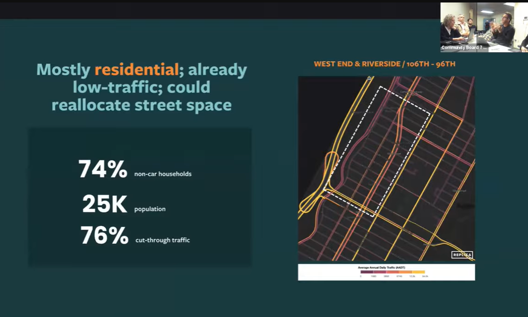 On the Upper West Side, where approximately 25% of households own a car, Open Plans highlighted West End Avenue and Riverside Drive from West 96th to 106th Street as a potential opportunity for an LTN.