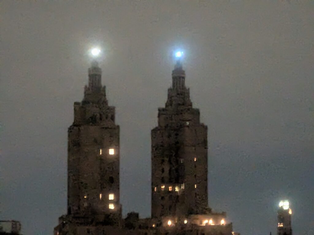 “Recently one of the lights on the top of San Remo must have broken,” Upper West Sider Ethan Benjamin wrote in an email to West Side Rag. “It was out for a few days. Then they replaced it… but the two lights are different colors now!”