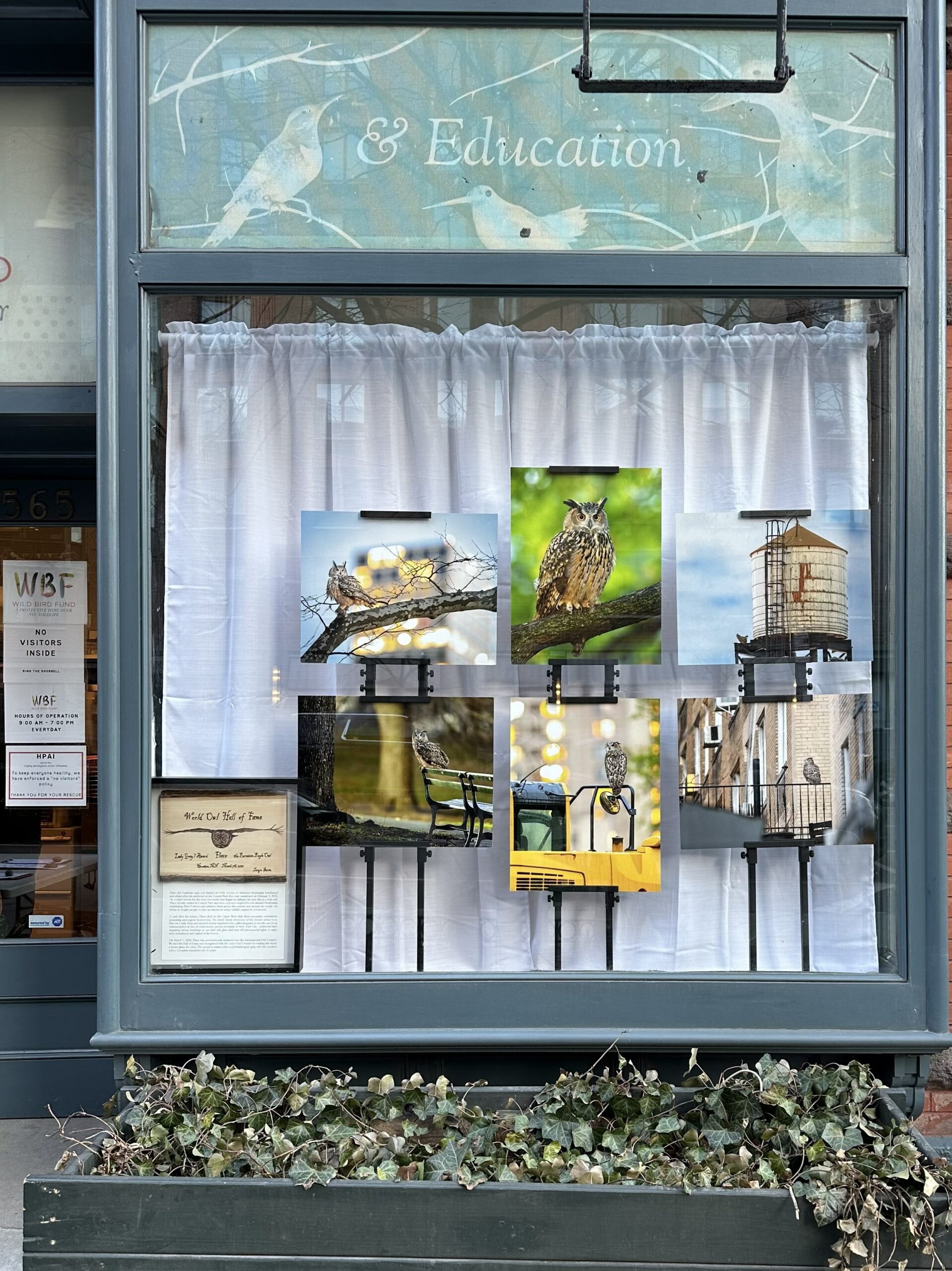 Last month, Flaco made history as the first New York City owl inducted into the World Owl Hall of Fame. His award was accepted by Jacqueline Emery and her partner David Lei, authors of “Finding Flaco: Our Year with New York City’s Beloved Owl”. They nominated Flaco for the honor, along with two other people, and arranged for the wooden plaque and six of their photos to be placed in the window of the Wild Bird Fund on Columbus Avenue, between West 87th and 88th streets.