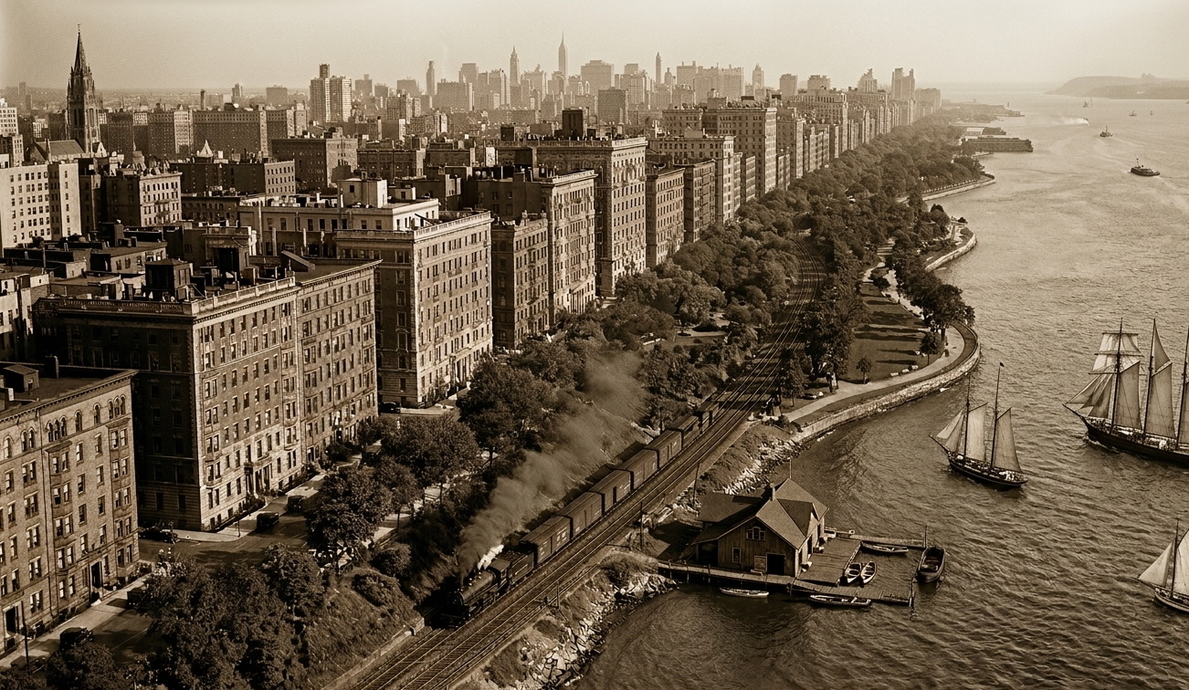 OK, these AI fakes fooled approximately nobody! But what exactly was wrong with them? The image purporting to look down the Hudson gave you more opportunities to find flaws: Where does Riverside Park ever undulate so noticeably, and what ship captain in their right mind would head straight for a shoreline lacking any evidence of piers with all their sails set? Most Upper West Siders know their church spires, but there is and was none that looked like the one near the upper left corner. It’s tough to reconcile midtown skyscrapers with 19th century sailing ships unless they had time travelled from Op Sail 1976. And what’s with New Jersey? There hasn’t been a protuberance like that on the Jersey coastline since Chris Christie went sunbathing.