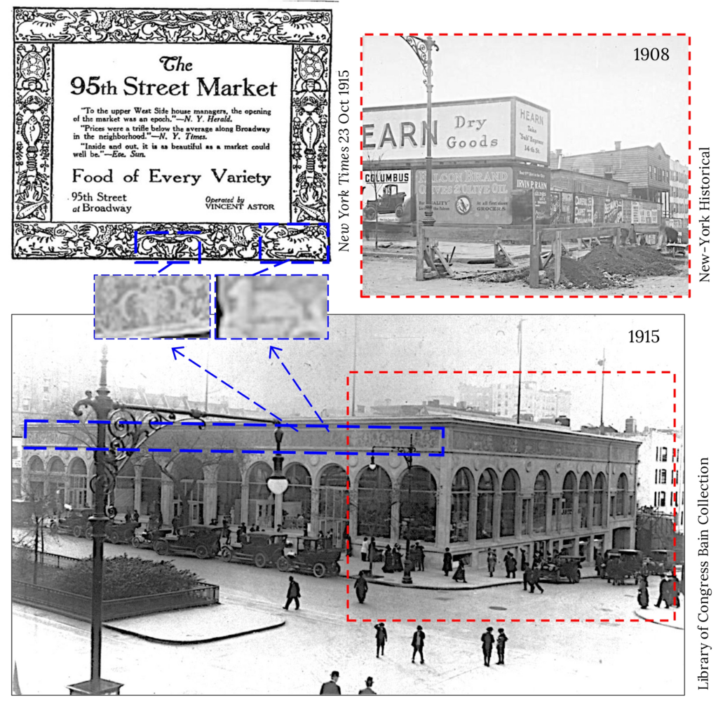 The rest of the story: The short-lived Astor Market is a well-known piece of Upper West Side history. Short version: Extremely rich guy lavishes money and attention on a pet project that only lasts a couple of years, then the building languishes for decades before being reborn as a theater space that becomes a beloved neighborhood cultural center. Let’s unpack the story a bit more, because this was a handsome building and a solid idea that was ahead of its time, at least in America: an indoor food market with independent vendors.