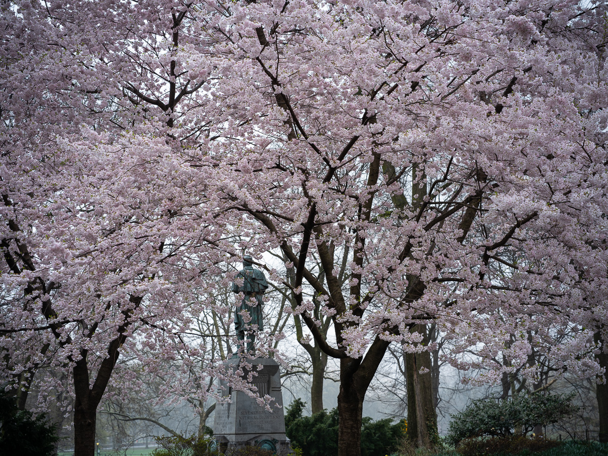 Cherry blossom season in New York City lasts from around late March into early May, meaning we are coming into the peak viewing weeks of the flower.