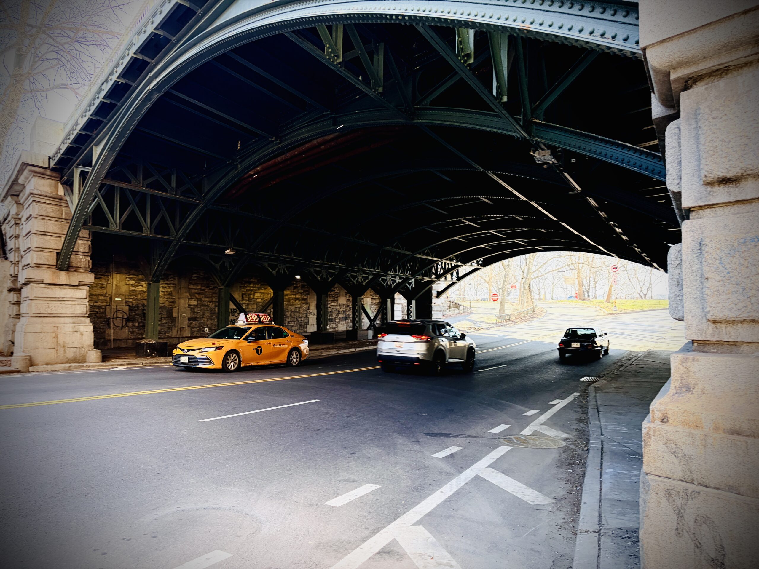 Surrounded by the vroom of the cars, I watch a boy conquer a dinosaur on the playground by the highway. Maybe this is where Miller’s long-skirted woman considered taking on the rickety bridge. It’s now where I tackle the highway, navigating its mood as I move through tunnels and detours, until I reach the river. The idyll is still here, beautiful enough to block out the noise of the traffic above. The Hudson sparkles, ducks are cackling, runners are shaking off the day, and two seniors are cuddling on a bench. It’s not the 1869 kind of pastoral calm, but exactly the kind I was looking for.