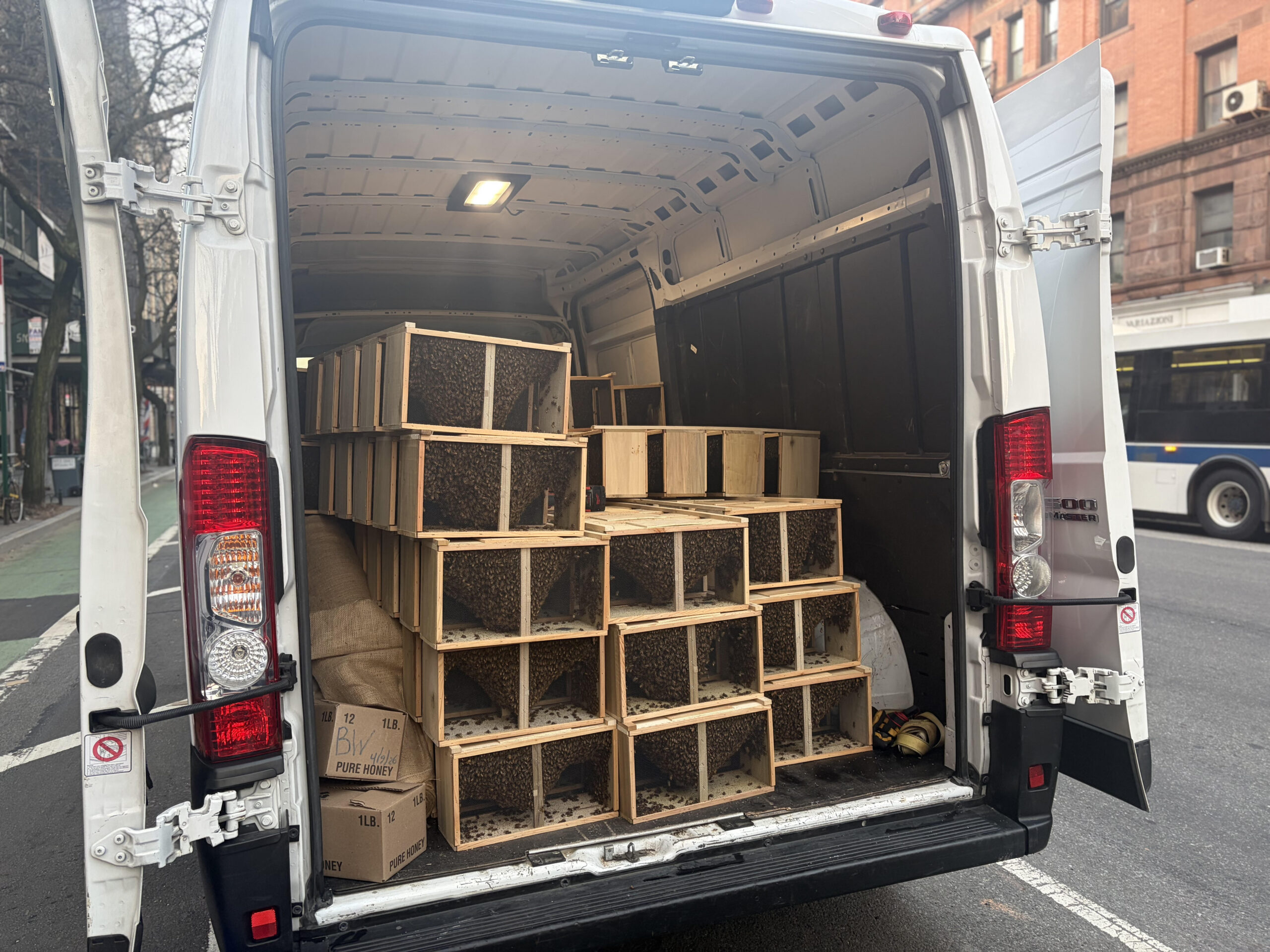 At just past 6:45 a.m. on a chilly Friday, Andrew Coté started unloading boxes of bees from the back of a white rental van parked on the Upper West Side.