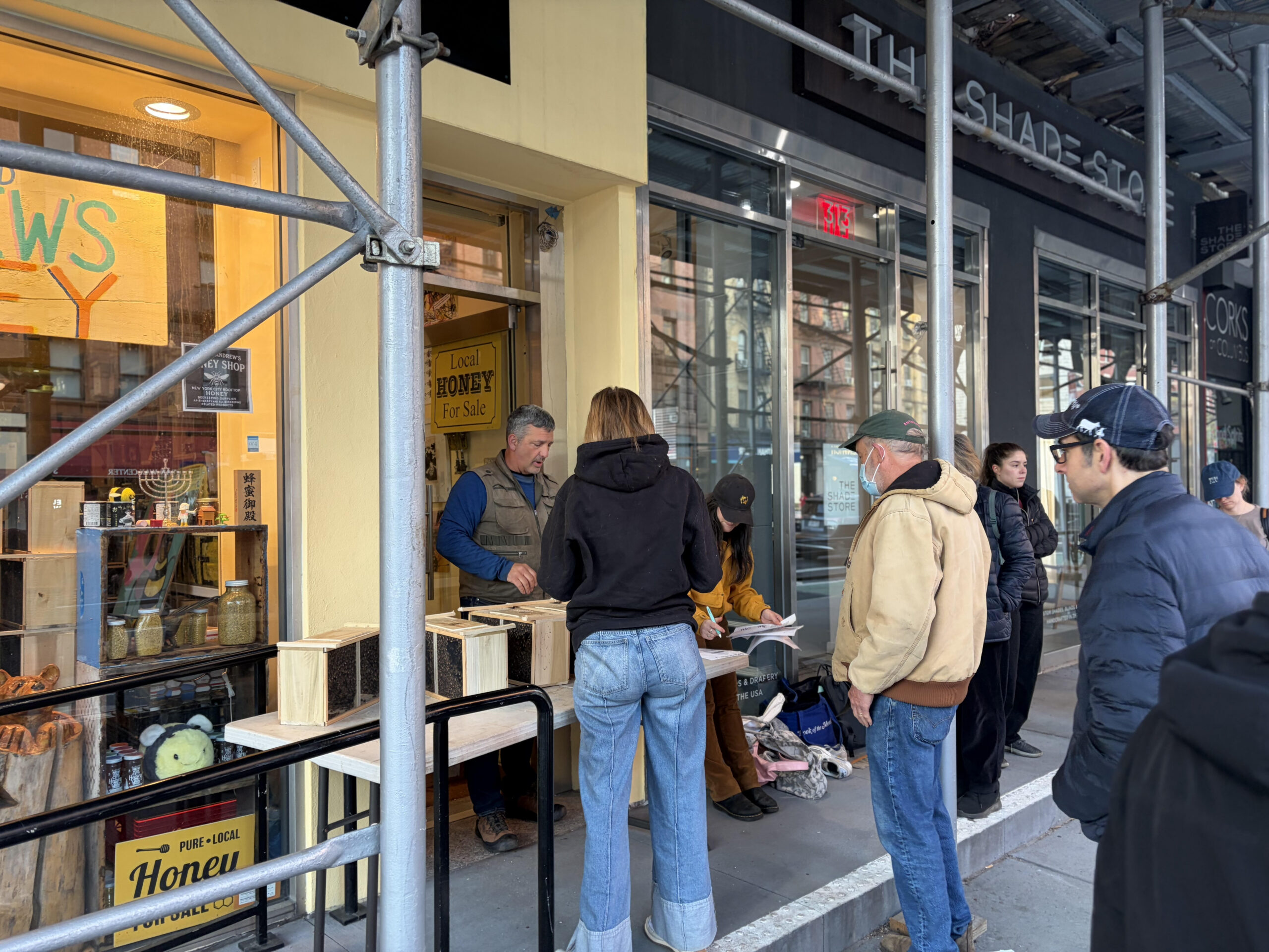 The shop, which sells many types of local honey, was the site of this year’s distribution of live bees to dozens of beekeepers in the city. Coté has held this event – affectionately called “the running of the bees” – for the past 20 years in various locations, including Bryant Park and Columbus Circle.