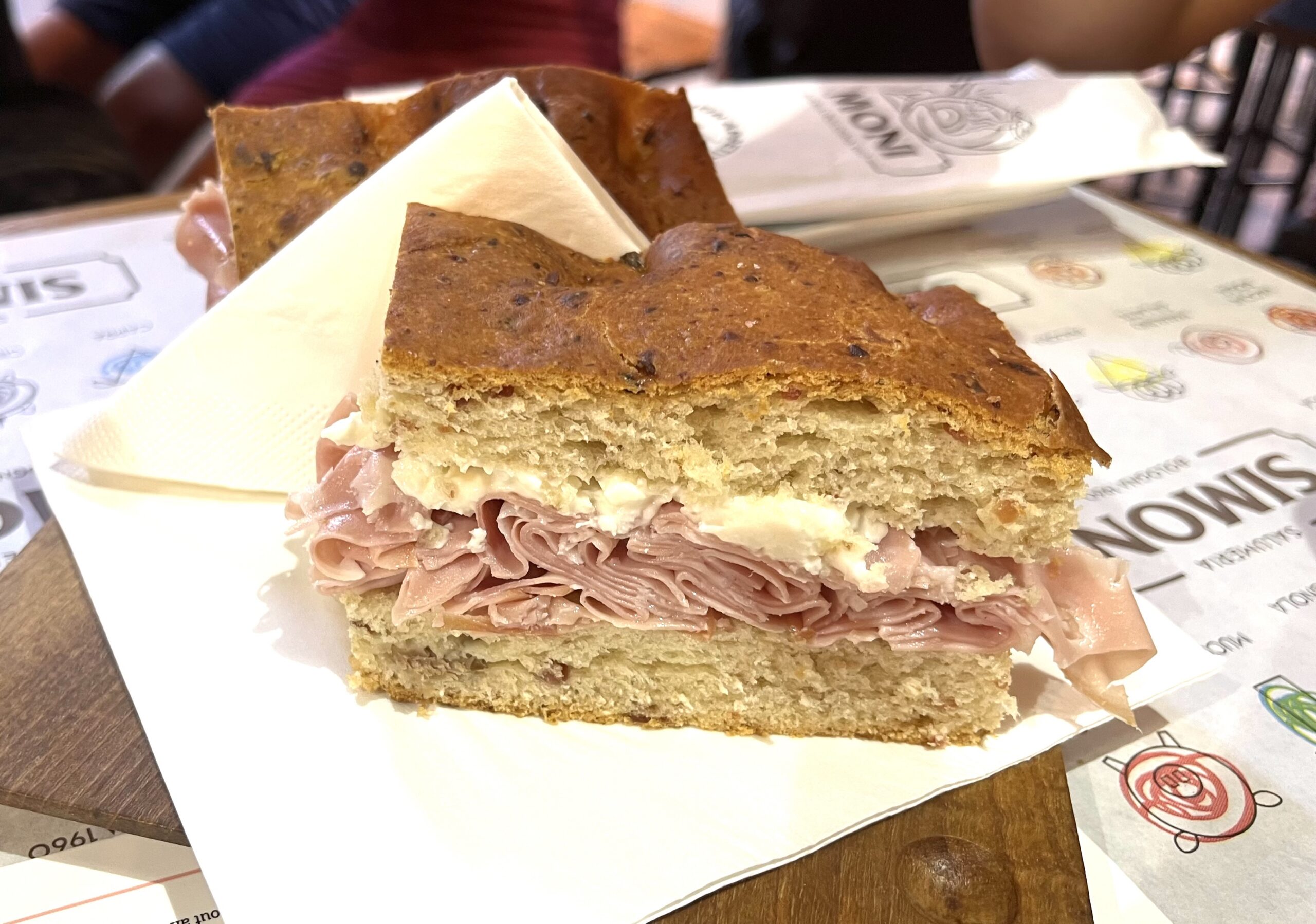Agree, but what are the odds that SR’s mortadella (packaged, conditioned, transported, stored) is even close in freshness to the one served by the actual maker of the mortadella in Bologna. I man, even if SR imported it from Simoni themselves, it probably wouldn’t taste half as good. Hence the pistachio pesto, used for “hiding” purposes, probably. Still a damned good sandwich, and the bresaola one is off the charts.