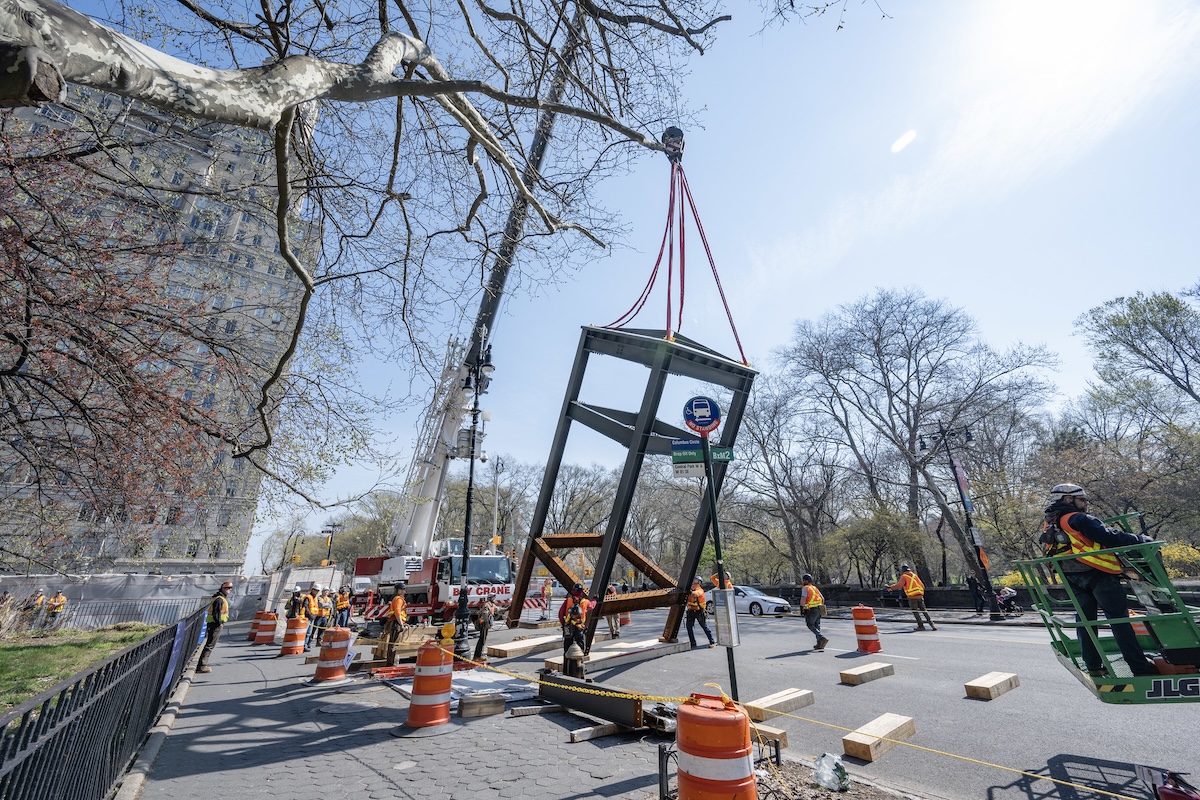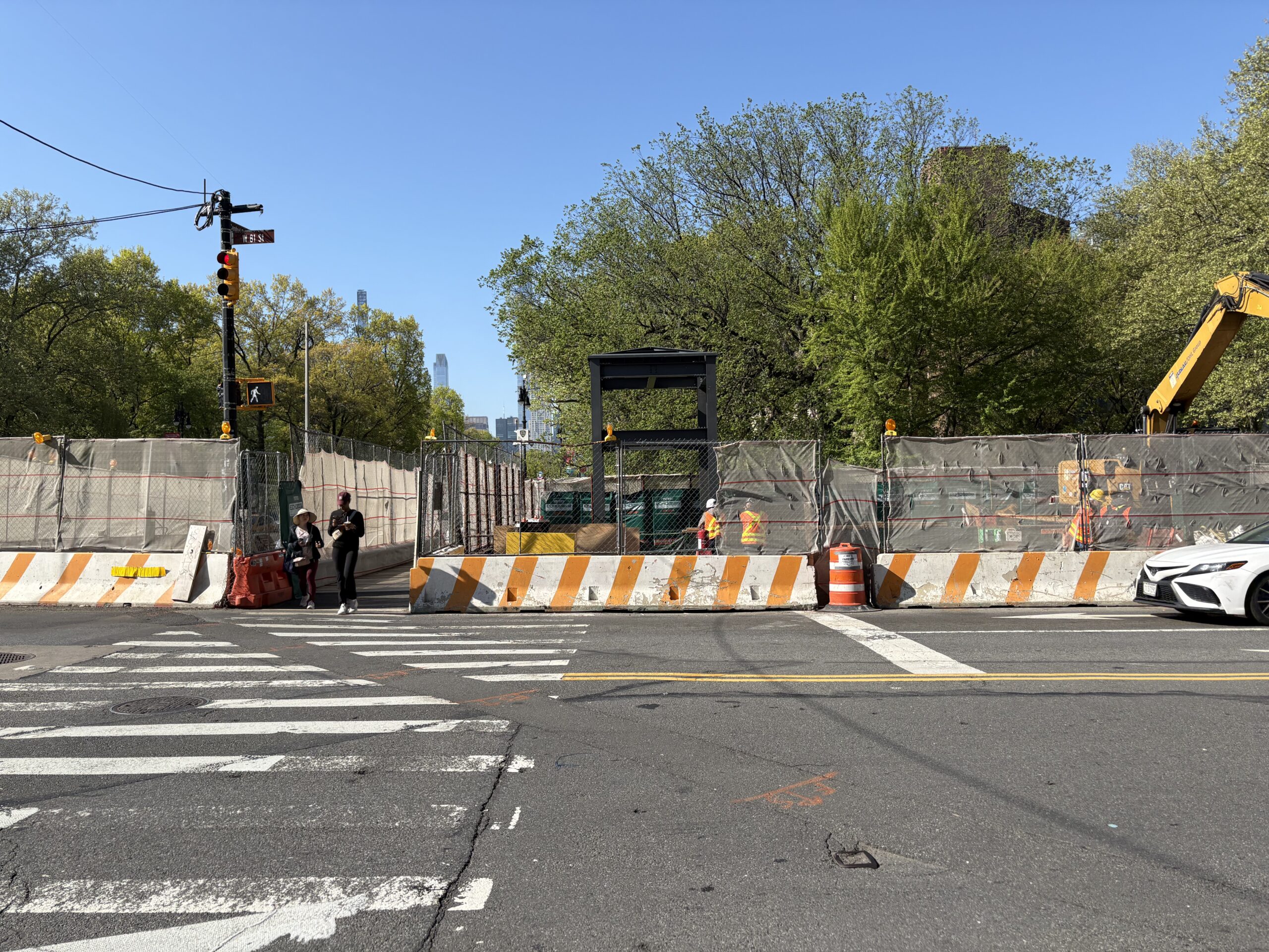 The shaft arrived earlier this month by truck in the middle of the night, according to an MTA construction update. In the morning, it was lifted by a crane, swung over Central Park West, and set in place in the enormous hole that has been drilled into Manhattan’s notoriously hard metamorphic rock – all while stopping traffic for only ten minutes.