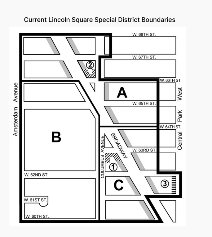 The area on West 66th and 67th streets, from Columbus to Central Park West, has commercial zoning laws similar to Midtown, where there are not the same height-limit rules that exist in the adjacent blocks of the Lincoln Square Special District.