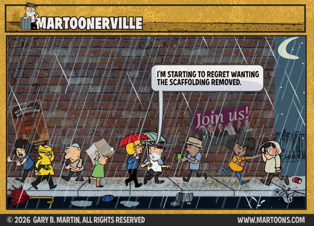 Martin nails it again. While I have no love for Big Scaffolding which must have an amazingly powerful lobby, I do appreciate them on a rainy days