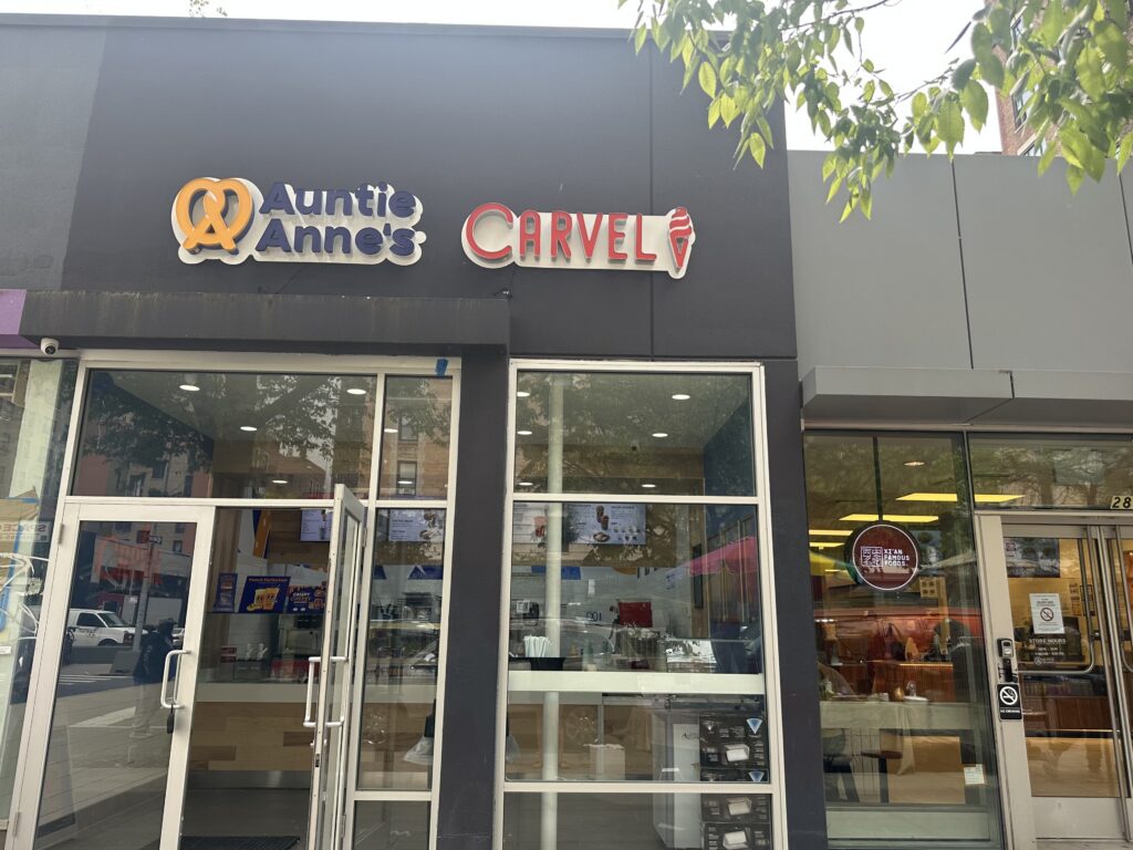 Auntie Anne’s, the pretzel company, and Carvel, the ice cream company, opened on April 26th at 2818 Broadway (at West 109th Street), an employee told West Side Rag. This is the second Upper West Side location for the Auntie Anne’s/Carvel combo. The first location opened in 2024 at 2588 Broadway (between West 96th and West 97th streets).