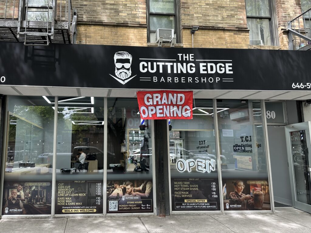 The Cutting Edge Barber Shop, opened at 580 Amsterdam Avenue ( between West 88th and West 89th streets), on April 20th. The owner, Danny, is known as “Danny Barber” and previously worked at The Cutting District Barber Shop at 265 Columbus Avenue (at West 72nd Street). The Cutting Edge Barber Shop is open from 9 a.m. to 8 p.m. on weekdays, and from 9 a.m. to 7 p.m. on Saturdays and Sundays. Gerard Anthony Salon, which closed in May 2025 (the owners now operate out of Salli B Salon), was previously in the space. (Thanks to Julie for the tip.)